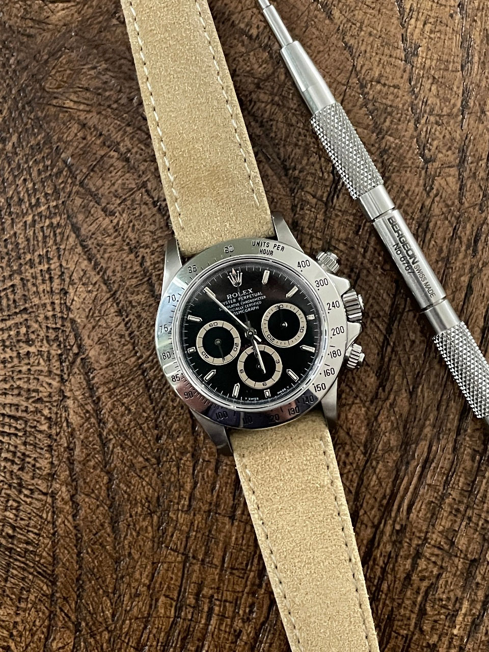 A major contributor to the success of this particular Submariner series was the watch’s unique design elements that set it apart, at least visually, from the Rolex Submariner. The hour indicators and watch hand were the watch’s distinct features as with all references and this 94110 model and they were specifically created in response to a request from the French Navy.The dial has developed a creamy patina and the case has light scratches as you would expect of a 45year old timepieceAs with all our vintage and used watches this has been checked over by our watchmaker